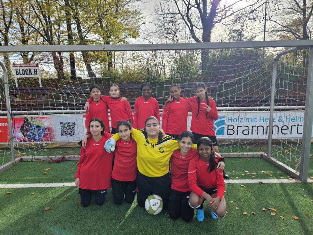 Am 29.10. machten sich 9 Schülerinnen der 6. Klasse und 1 Schülerin aus der 5. Klasse auf den Weg zu den Fußball-Stadtmeisterschaften am Inda-Gymnasium. Sowohl das erste Spiel gegen das St. Leonard als auch das zweite gegen das Inda waren recht ausgeglichen. Chancen gab es auf beiden Seiten, doch leider hat immer nur der Gegner die Tore gemacht. Das erste Spiel ging mit 0:4 deutlich zu hoch verloren. Oft waren es leichtsinnige Ballverluste, die zu den Gegentoren führten. Das zweite Spiel war knapper und die beiden Gegentore fielen erst Mitte der 2. Halbzeit. Leider hatten wir keine Auswechselspieler und man merkte den Mädels an, dass die Kräfte schwanden.  Unser Team spielt noch nicht lange zusammen und viele haben erst mit dem Fußballspielen angefangen – da ist also noch Luft nach oben! Kampfgeist und Motivation waren top!