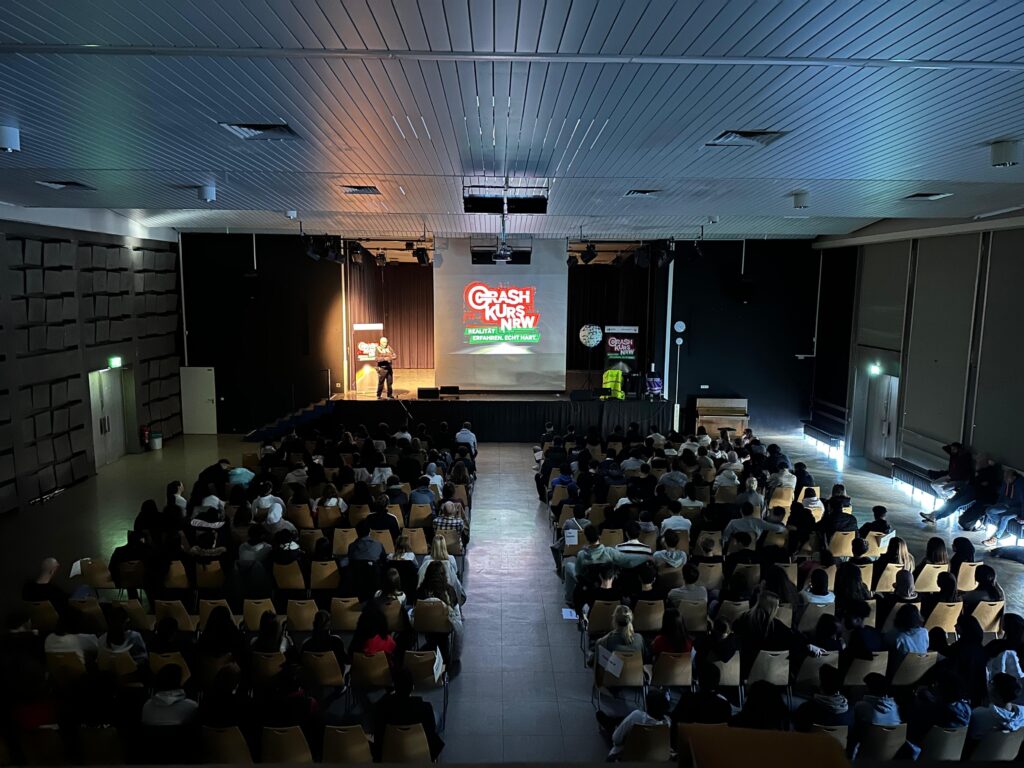 Am 5. Dezember 2025 fand in der Aula des Geschwister Scholl Gymnasiums Aachen der Crash Kurs NRW statt – ein bewegendes Präventionsprogramm zum Thema Verkehrssicherheit. Teilgenommen haben die 10. Klassen der GHS Aretzstraße, der Hugo Junkers Realschule sowie der gastgebenden Schule. Die Veranstaltung überzeugte mit einer starken Moderation, eindrucksvollen Programmpunkten und emotionalen Berichten von Polizei, Feuerwehr, Rettungskräften, Notfallseelsorgerinnen und -seelsorgern sowie direkt Betroffenen. Sie machten deutlich, dass Verkehrsunfälle keine Zufälle sind, sondern häufig durch Regelverstöße verursacht werden – und damit vermeidbar sind. Besonders beeindruckend war die Aufmerksamkeit und Ernsthaftigkeit, mit der die Jugendlichen das Gehörte aufnahmen. Crash Kurs NRW sensibilisierte für die Folgen riskanten Verhaltens im Straßenverkehr – durch echte Geschichten, die unter die Haut gingen.